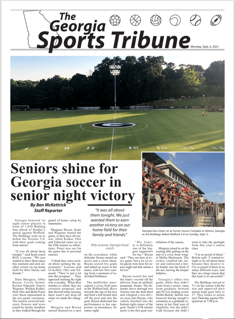 This project took me through a treacherous aspect of design that hits so close to an industry I’m in – writing and reporting. Print design is some of the hardest, most intricate and tedious designs I’ve ever indulged in, but that doesn’t really cross your mind given how newspapers are just thrown around on your doorstep on a weekly basis. Is that even still a thing? This was actually one of my very first designs as I stepped into the world of design. Granted, it’s not the greatest newspaper design you’ll ever see, but to me it shows a new designer persevering through the overwhelmingness and trickiness that is Adobe design software. I used Adobe InDesign and my own original reporting on a UGA soccer match to create this project, and, upon completion, I emerged over that initial hump of digital design.